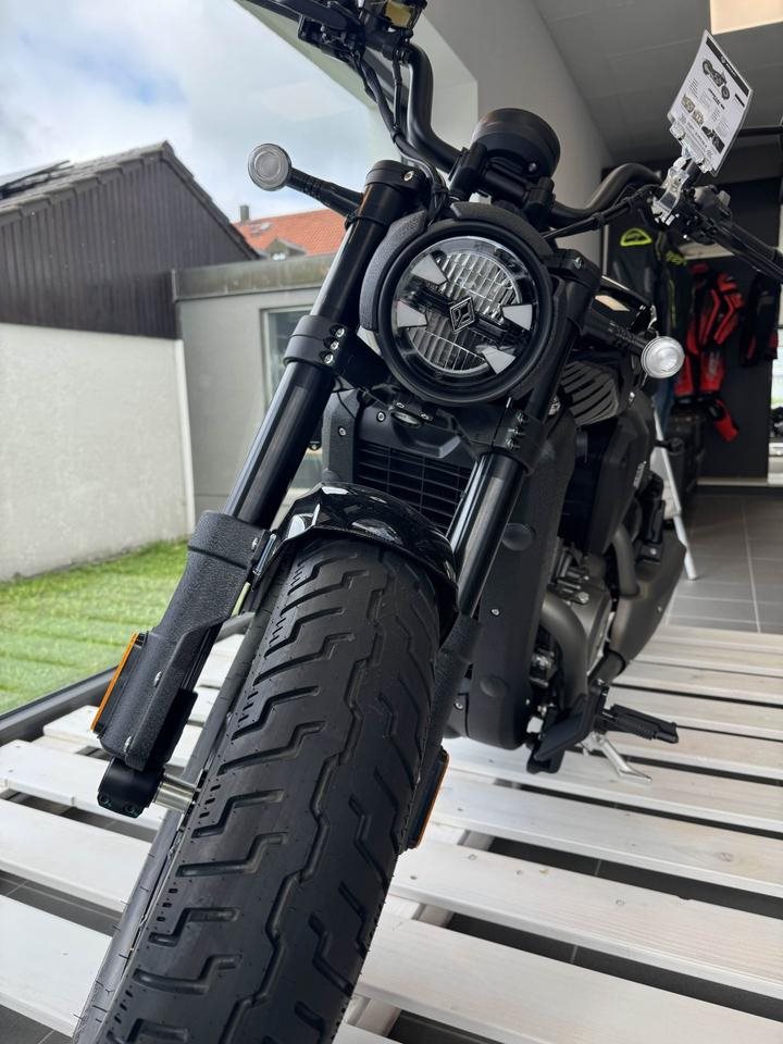 Fahrbar mit A2! 8999€ zuzüglich 300,- € Überführung Benda: 3 Jahre Garantie und verlängerbar auf zusätzliche 2 Jahre!! Luftfahrwerk und Tempomat! BENDA baut ein Motorrad in der 500er-Klasse mit V4. Der Geist zeichnet einen Supersportler der guten alten Zeit nach, doch die DARK FLAG 500 ist ein Cruiser mit V4 und 54 PS. Klassisch gezeichnet, mit modernen Elementen und wichtig Zahnriemen als Antrieb. Neben dem im Grunde schon immer exotischen Motorenlayout des V4 fällt bei der kleinen Benda das einzigartiger Luftfahrwerk auf. Und das ist immer noch nicht das Auffälligste an der neuen BENDA DARK FLAG 500! ___________________________ Motorradgarage Olching Ihr Motorradfachhändler Wir sind ein eingetragener Händler bei uns kaufen Sie mit Sicherheit! Probefahrt nach Terminvereinbarung Wir freuen uns auf Sie!